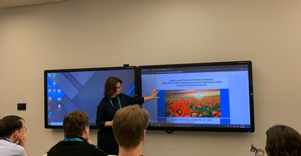 Instytut Europy Środkowej reprezentowała dr Hanna Bazhenova, która wystąpiła w panelu „Commemorations”. Wygłosiła referat pt. „Borders and National Memory-Making: First World War Commemoration in Ukrainian Lands during the Interwar Period”, poświęcony sposobom upamiętniania I wojny światowej na ziemiach ukraińskich w okresie międzywojennym w kontekście kształtowania pamięci narodowej i granic.