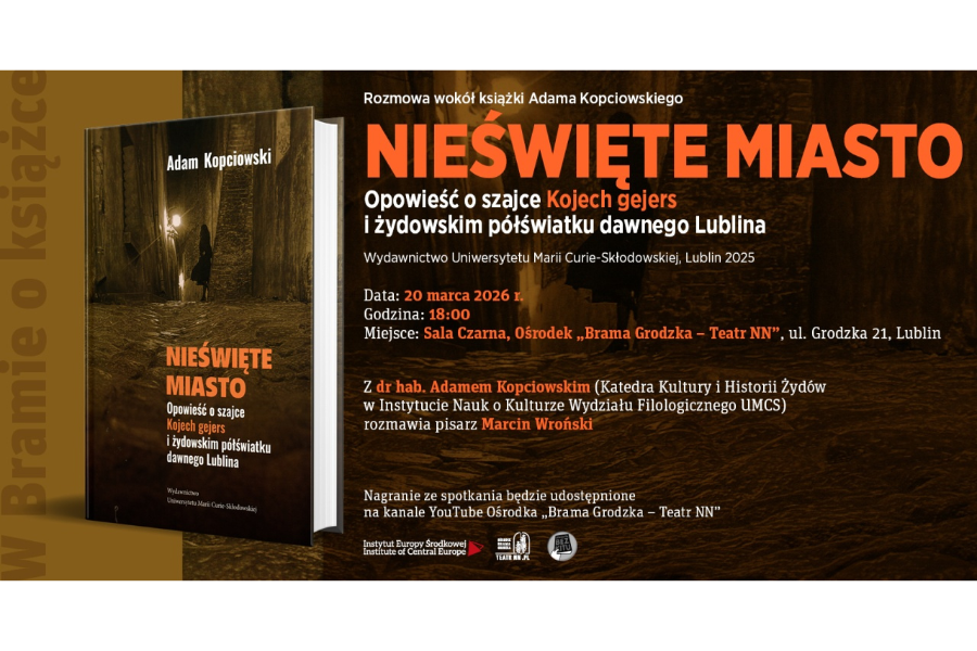Spotkanie z cyklu „W Bramie o książce”, poświęcone książce Adama Kopciowskiego „Nieświęte miasto”. Opowieść o szajce Kojech gejers i żydowskim półświatku dawnego Lublina (Wydawnictwo Uniwersytetu Marii Curie-Skłodowskiej, Lublin 2025).
