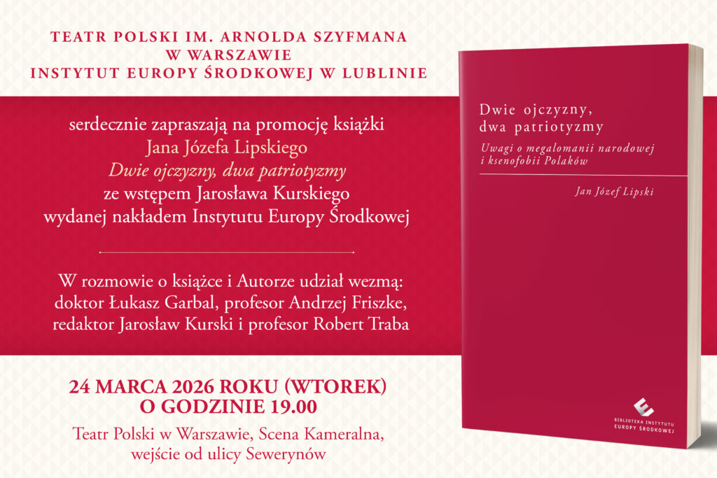 Spotkanie w Teatrze Polskim im. Arnolda Szyfmana w Warszawie poświęcone Janowi Józefowi Lipskiemu i jego esejowi Dwie ojczyzny, dwa patriotyzmy (seria Biblioteka IEŚ).