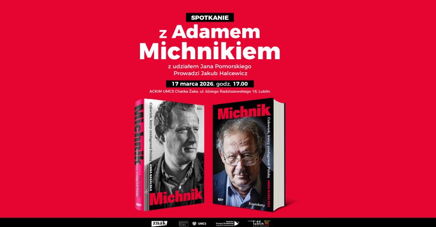 Spotkanie z Adamem Michnikiem poświęcone premierze jego dwutomowej biografii intelektualnej autorstwa Anny Nasalskiej. W spotkaniu udział weźmie prof. Jan Pomorski, autor przedmowy do książki. Rozmowę z gośćmi poprowadzi Jakub Halcewicz.
