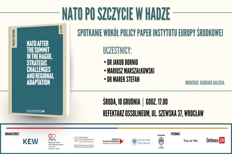 A debate in the Ossolineum Refectory in Wrocław on the consequences of raising defence spending to 5% of GDP and on changes within the functioning of the NATO. IEŚ experts and partners will discuss the findings of the latest policy paper published by the Institute, as well as Poland’s role at the summit and the prospects for transatlantic cooperation. The event will be held in Polish.