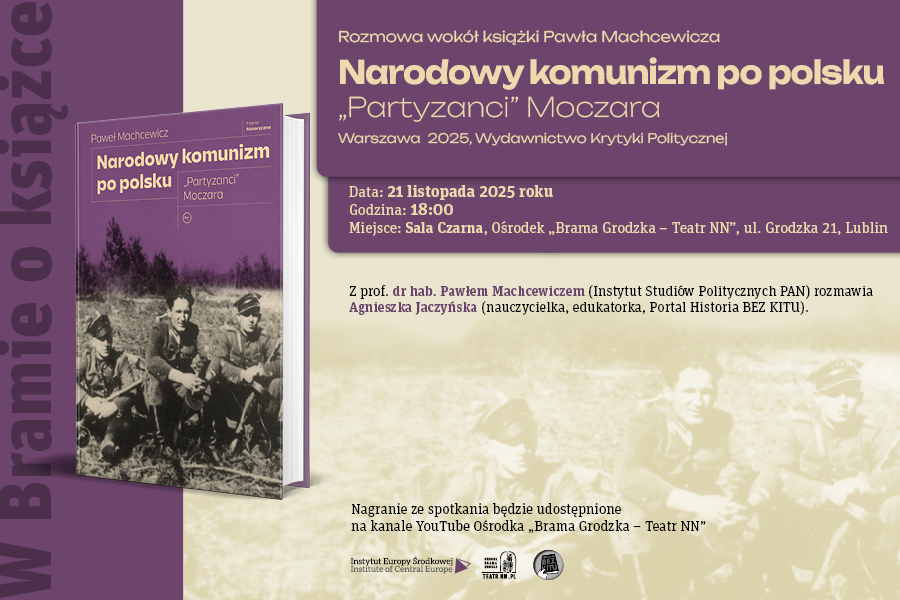 A meeting in the “W Bramie o książce” series, devoted to Paweł Machcewicz’s Narodowy komunizm po polsku. „Partyzanci” Moczara (Wydawnictwo Krytyki Politycznej, 2025).