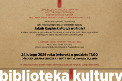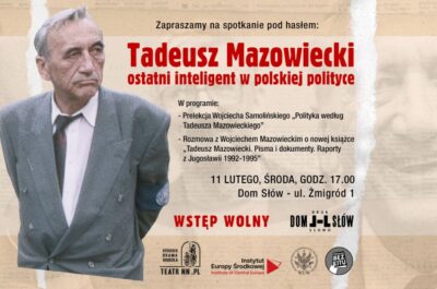 On 11 February at 5:00 p.m., we invite you to the House of Words (Dom Słów, ul. Żmigród 1, Lublin) for a meeting dedicated to Tadeusz Mazowiecki, one of the most important figures in Poland’s contemporary history. The event will be divided into two parts. First, we will hear a lecture by Wojciech Samoliński entitled “Politics According to Tadeusz Mazowiecki.”...